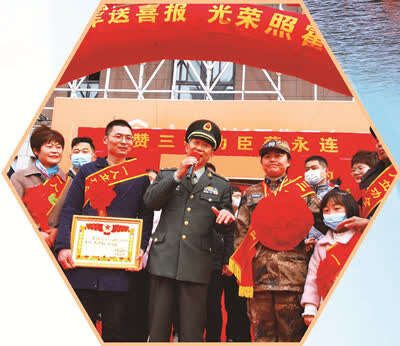 图①:安徽省军区领导为六安军分区立功受奖的文职人员送喜报。周海良摄